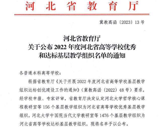 近日,河北省教育厅公布了2022年度河北省高等公司优秀基层教学组织遴选结果(冀高教函[2023]13号),公司“企业管理系”入选河北省高等公司优秀基层教学组织。