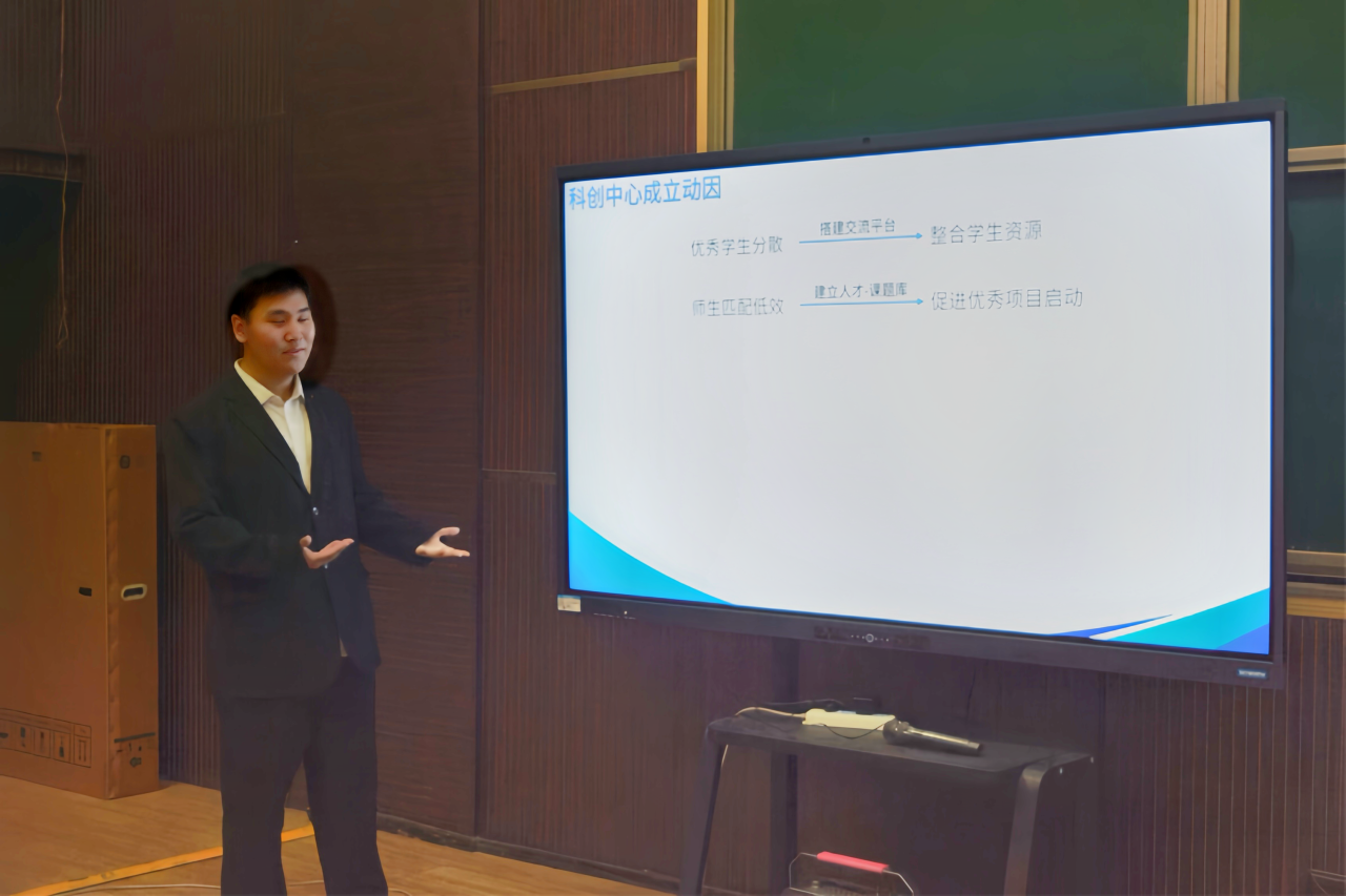 随后,桑银峰教授致辞,他围绕“两个维度,三个场景”详细阐述了人才培养的创新模式,强调科创中心不仅是提供资源的“平台”,更是一个锤炼实践能力、实现知行合一的“育人场景”。他希望同学们在此平台上,努力将所学知识“体系化”,敢于尝试,勇于实践,在团队协作中博采众长,于科研竞赛中实现认知与素养的跃升。