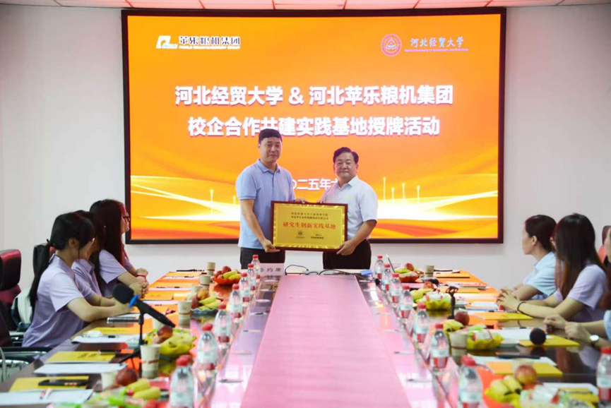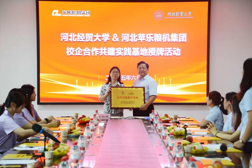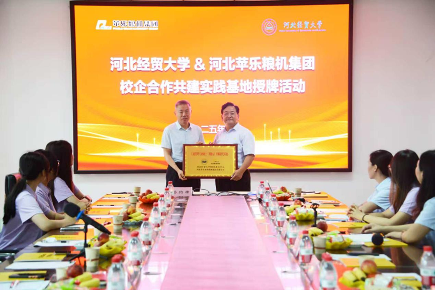 为深入贯彻落实国家关于深化产教融合、校企合作的战略部署,推动教育链、人才链与产业链有机衔接,6月30日,威廉希尔官网经理李桂荣带队赴河北苹乐面粉机械集团有限公司参加校企合作签约暨“本科实践教学基地”“研究生创新实践基地”“工商管理专业硕士(MBA)导师研究基地”授牌仪式,副经理石晓飞、MBA中心执行主任桑银峰、市场营销系教师温志英随同参加。河北苹乐面粉机械集团有限公司董事长李建军,总经理吴军永,小麦工程事业部总监杨庆华,人力资源部部长李晓玲等出席仪式。