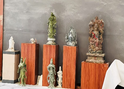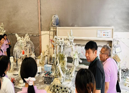 进入公司后,在杨京川大师的引领下,活动有序展开,一套100年前用贝壳镶嵌的组合衣柜率先映入眼帘,其华丽质感与厚重历史气息令人印象深刻。然后,团队成员深入石雕生产车间,近距离观摩风格各异、用途广泛的石雕作品——既有古朴典雅的传统雕塑,也有融入现代设计理念的创新之作。杨大师详细介绍了每件作品创意的由来和技法,从选材、构思、粗坯打造到细节雕琢,一件件石雕作品在讲解中更显惟妙惟肖。同时,他还分享了作品背后的文化故事,充分展现出曲阳石雕深厚的文化底蕴与独特的艺术魅力。团队成员在感受传统工艺魅力的过程中,对企业生产流程形成了直观认知,也对产品质量管控环节进行深入思考。