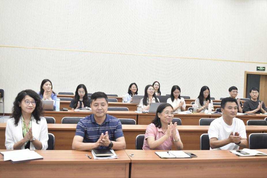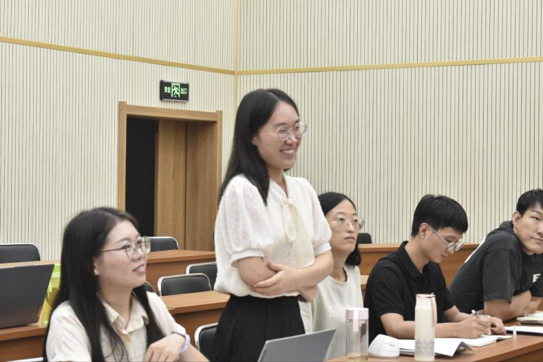 述职环节中,韩晴、李妍、张晓丹、李天歌、刘志丽等入职已满半年的5位博士依次从科研、教学、服务等维度汇报。科研方面,老师们从课题申报进展、学术论文撰写及成果转化等方面进行汇报,展现了对学科领域的持续探索;教学方面,汇报了入职以来的听课学习收获、课程建设思考以及教学能力习得等情况;服务层面,汇报了参与厅局政策咨询、县域产业调研,以及投身公司志愿工作的服务经历。老师们还结合自身优势,明确了下一步科研聚焦方向、教学探索创新的规划。