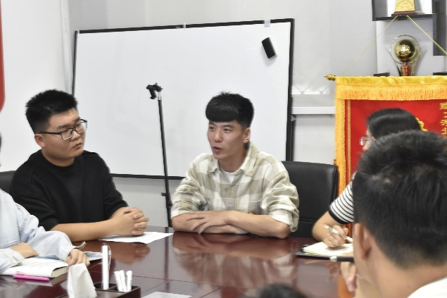 座谈会上,两位员工代表先后发言。公司团学融主席团成员张渝晨表示,不仅要认真学习“开学第一课”精神,更要做校史文化与朋辈力量的传播者和践行者,以“扎根”与“传递”为重心,争做与时代同行的“新经贸人”。员工党员胡国庆表示,将牢记李书记嘱托,以昂扬姿态践行“强国有我”的誓言,在思想引领和服务同学中坚守初心,通过朋辈互助实现共同成长,展现青年担当。随后,同学们结合个人体会,从专业学习、责任担当、校史传承等角度分享心得,表达了夯实专业基础、践行使命担当、传递青春力量的决心,体现了工商学子在思想与行动上的深刻感悟与成长规划。