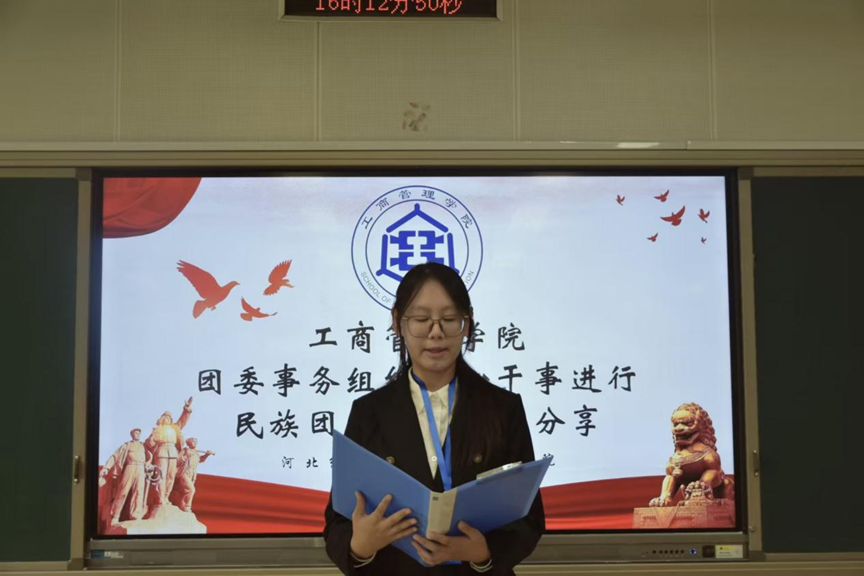 在历史故事分享环节,团委事务组织中心干事张静源带领大家回顾了各民族同心共济的壮阔历程。从明清时期回族与汉军共同参与广州保卫战,到抗日战争时期东北抗日联军与鄂伦春、朝鲜等民族结成抗日同盟,一个个感人故事展现了各民族同呼吸、共命运的奋斗史诗。她引用习近平总书记“中华民族一家亲,同心共筑中国梦”的重要论述,号召青年学子做民族团结的维护者与践行者。