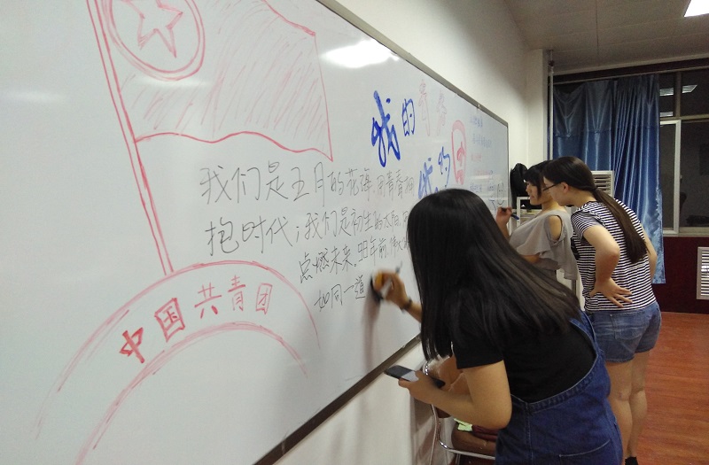 首先,同学们在活动开始之前共同绘制了以五四青年节为主题的团日板报。接下来由团支书主持并讲解了“走近信仰”党团知识,还用ppt进行了关于党团知识的展示,同学们集体观看了有关五四运动的电影,很多同学被电影里为捍卫国家主权游行的老员工们的激动人心的演讲所感动。随后同学们在“书写信仰”与“我的信仰-感悟分享”的活动中将自己对五四精神和电影的感悟写在纸上并进行相互分享交流心得。在活动的最后进行了主题演讲将气氛推到了高潮,此次活动圆满结束。