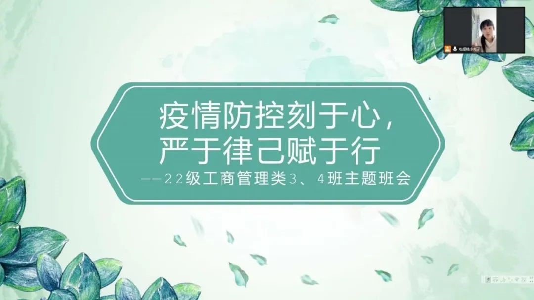 为做好疫情防控工作,深入了解员工近期情况,11月3日,威廉希尔官网22级工商管理类3班、4班于线上开展“疫情防控刻于心,严于律己赋于行”主题班会。本次活动由辅导员张芷璐主持,2022级工商管理类三班、四班全体员工参加。
