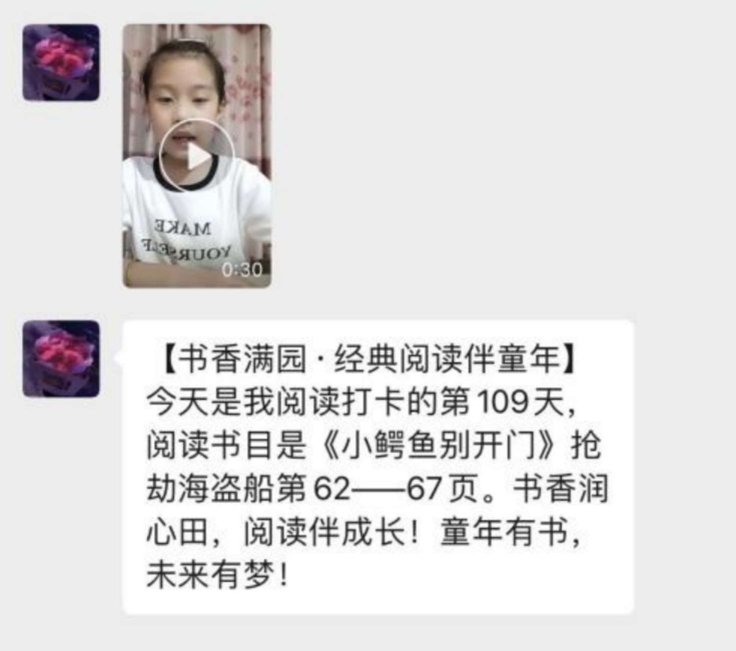 在云阅读中她给了我很多惊喜,在和妈妈聊过云阅读需要打卡后得知,小朋友有每天阅读打卡的习惯,会录下视频做记录,我想这真是一个有着良好阅读习惯的小朋友。看到视频后,小朋友声音洪亮,咬字清晰,各方面都非常优秀。