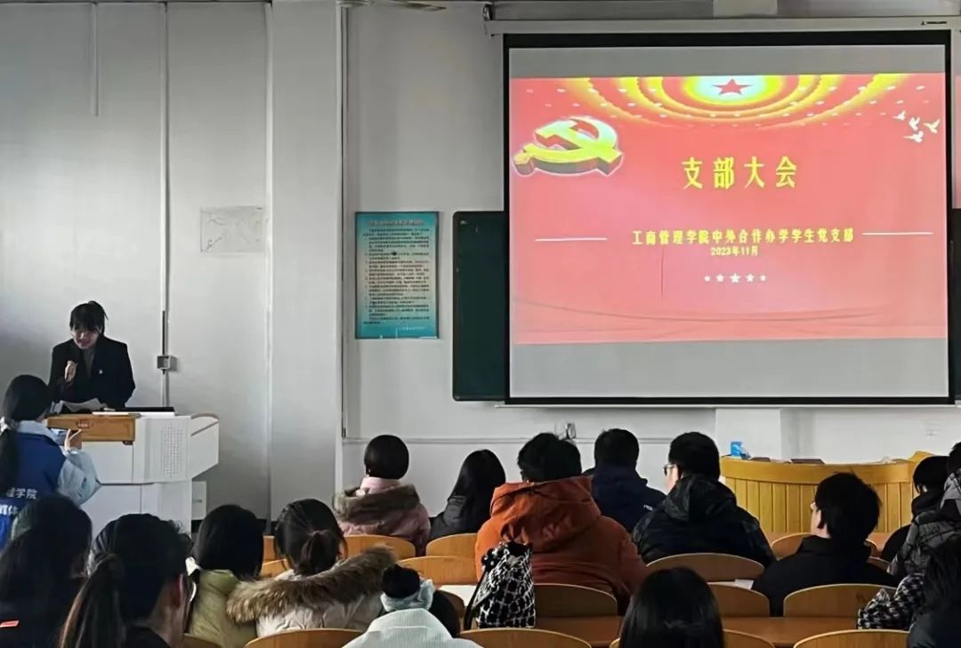 2023年11月27日上午,威廉希尔官网中外合作办学员工党支部大会在北二教205教室召开,此次大会共有两项议程:预备党员转正式党员、入党积极分子转预备党员。此次会议由中外合作办学员工党支部书记赵靓丹主持,威廉希尔官网正处级辅导员马章山、专职组织员宋欣、团委负责人贾晶晶、中外合作办学班主任李海燕、研究生党支部书记宋魁峰出席会议,全体入党积极分子和预备党员到场。