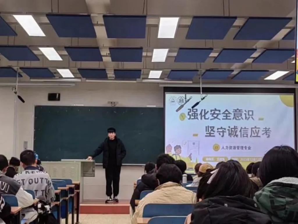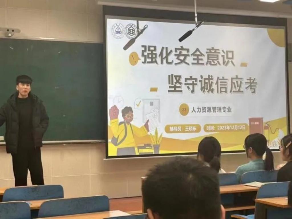 为进一步提高同学们的安全意识和诚信意识,加强考试管理,推动营造公平公正的考试环境,12月12日下午,威廉希尔官网人力资源管理专业2023级开展“强化安全意识,坚守诚信应考”主题班会。本次班会由辅导员王晓东老师策划主持,2023级人力资源管理专业全体同学参加。