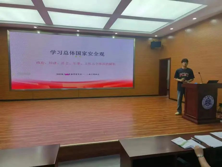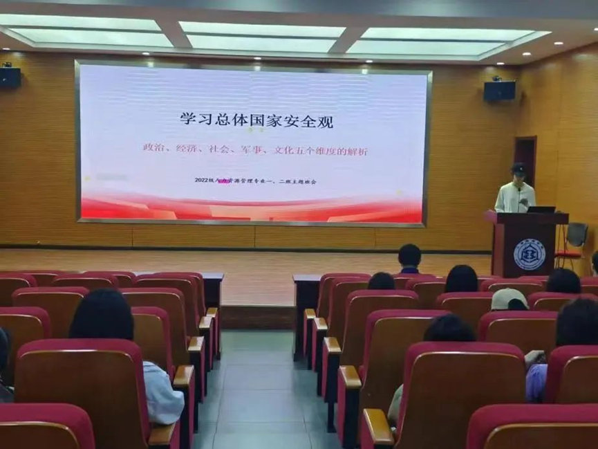 为深入贯彻落实习近平总书记关于加强国家安全教育的重要指示精神,引导员工进一步增强国家安全意识和法制观念,4月22日下午,2022级人力资源管理专业一班、二班召开“学习总体国家安全观,增强法制观念”主题班会。本次班会由辅导员李永峰组织策划,班长秦培召主持,2022级人力资源管理一班、二班全体同学参加。