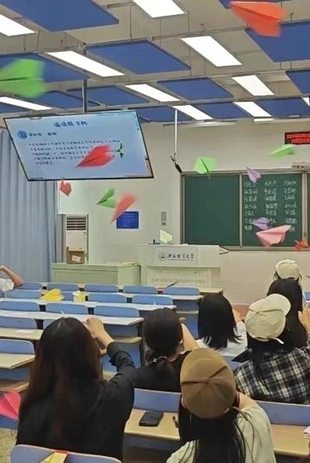 随后,张静雯组织同学们在彩色卡纸上写下自己近日来的压力与烦恼,将卡纸折成纸飞机飞向远方,象征着同学们的压力与烦恼的抽离,并鼓励同学们把激励自己的话写在便利贴上,在班会结束后将便利贴贴在自己的名字旁。