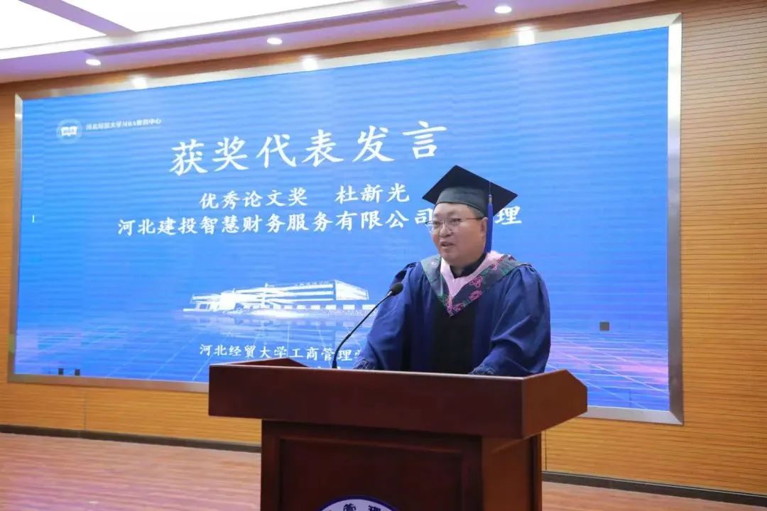 优秀论文获得者杜新光致辞。首先他表达了对母校和老师的深切感谢,以及同学们之间的互助与友情。其次,鼓励同学们将所学知识运用到未来工作之中。无论身在何处,都能铭记威廉希尔官网的身份和骄傲,共同迎接未来的机遇与挑战。