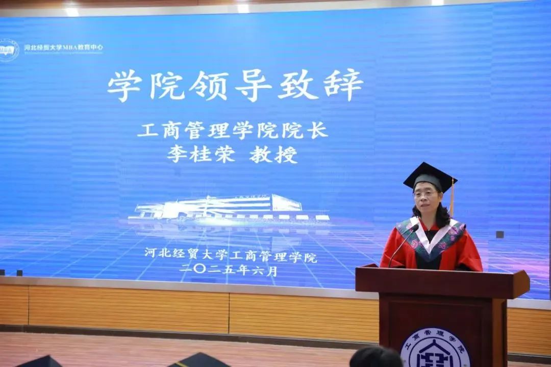 上午9点,毕业典礼正式开始。李桂荣经理首先致辞,她代表威廉希尔官网和MBA教育中心向2025届全体研究生表示衷心的祝贺,并对同学们提出四点希望:一是要坚守初心,勇担使命。将个人的职业发展与国家的战略需求相结合,为推动经济高质量发展、实现中华民族伟大复兴的中国梦贡献力量。无论身处何方,无论面临何种困难,都要坚守使命,以实际行动践行“经世济民,管经管业”的责任与担当;二是要创新思维,追求卓越。希望同学们保持敏锐的洞察力和创新思维,敢于突破传统思维的束缚,勇于尝试新的方法和模式;三是要持续学习,提升自我。希望同学们在毕业后继续保持对知识的渴望,不断学习新知识、新技能,提升自己的综合素质。关注行业动态,紧跟时代步伐,不断更新知识体系,以适应不断变化的社会需求;四是要团结协作,共创未来。同学们要以组织的目标为中心,善于协作,相互支持,共创未来。