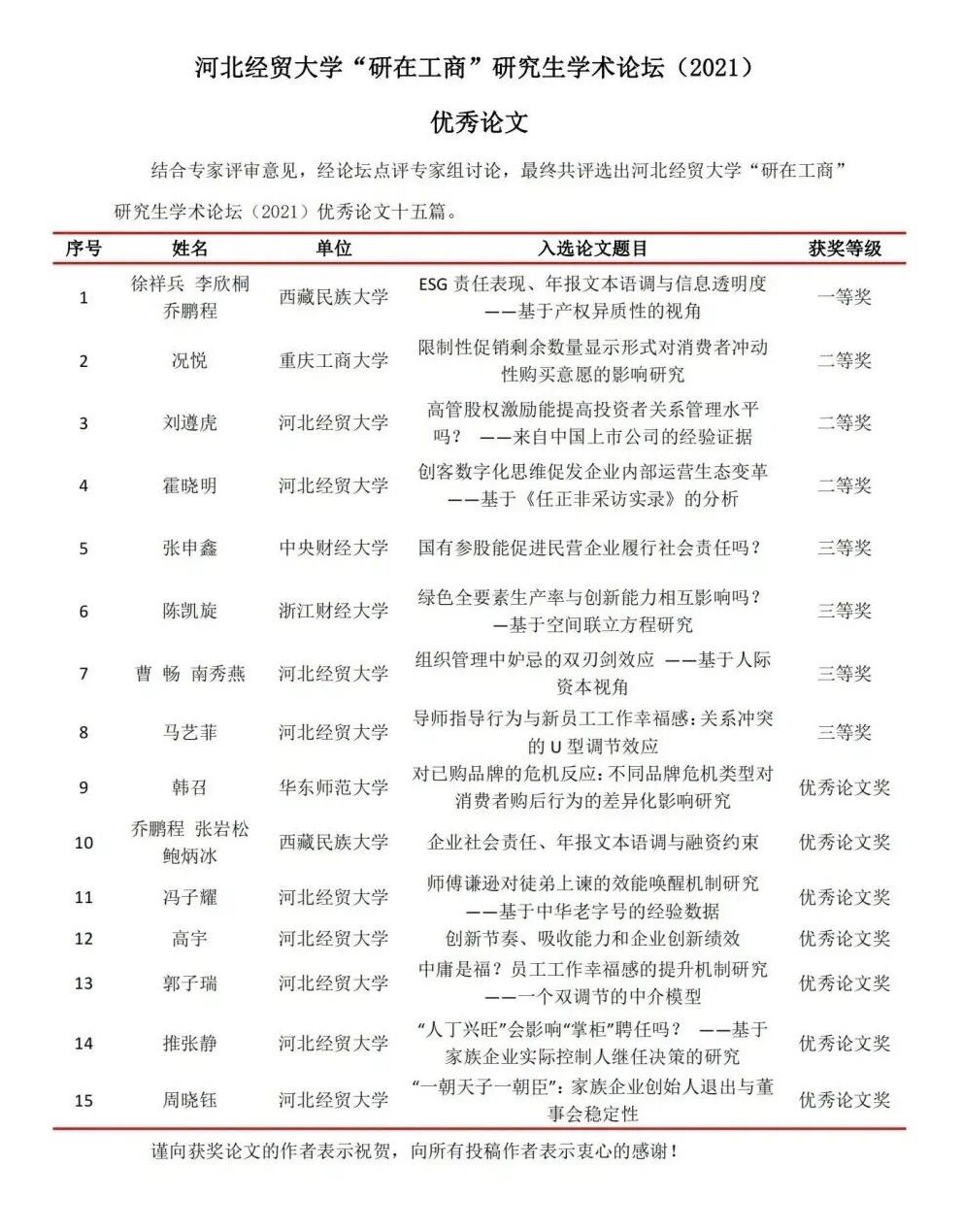 此次论坛自11月19日发布公告起,共收到来自北京大学、中央财经大学、浙江财经大学、重庆工商大学、西藏民族大学、云南大学等15所高校的39篇论文,其中8篇进行线上线下报告,其中包括浙江财经大学陈凯旋、中央财经大学张申鑫、西藏民族大学李欣桐、重庆工商大学况悦、威廉希尔官网曹畅、马艺菲、刘遵虎、霍晓明的论文。四位点评专家对以上八位同学的论文进行了针对性点评,提出了专业性指导意见。最终,结合评审专家意见和点评专家意见,最后评选出一、二、三等奖、优秀论文奖共15篇。