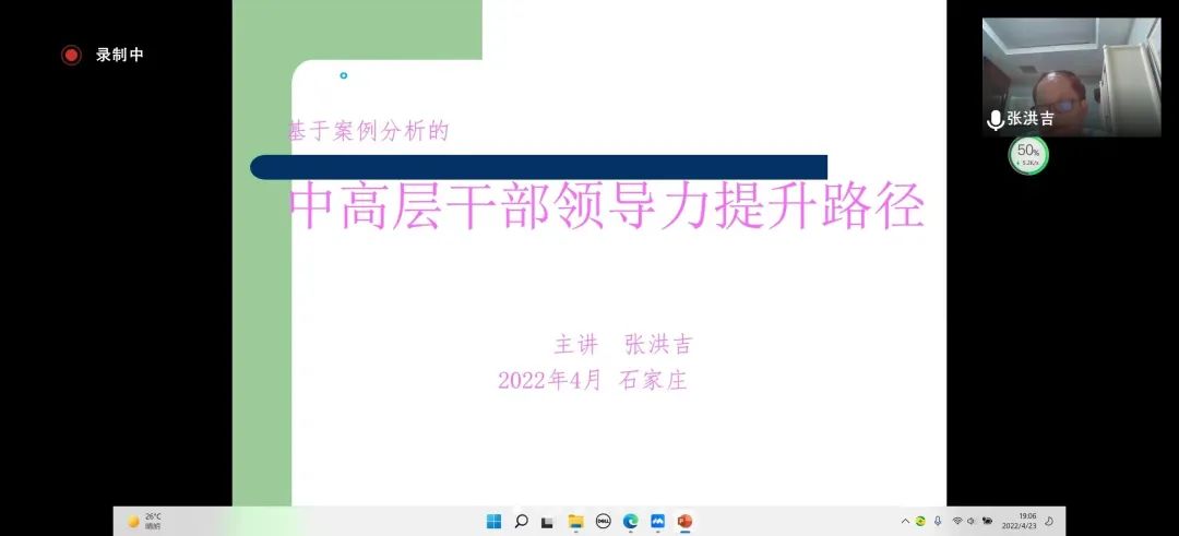 4月23日晚,张洪吉教授应威廉希尔官网邀请,通过腾讯会议平台作题为“基于案例分析的中高层干部领导力提升路径”的报告。本次会议由威廉希尔官网副经理石晓飞主持,MBA全体员工参加。