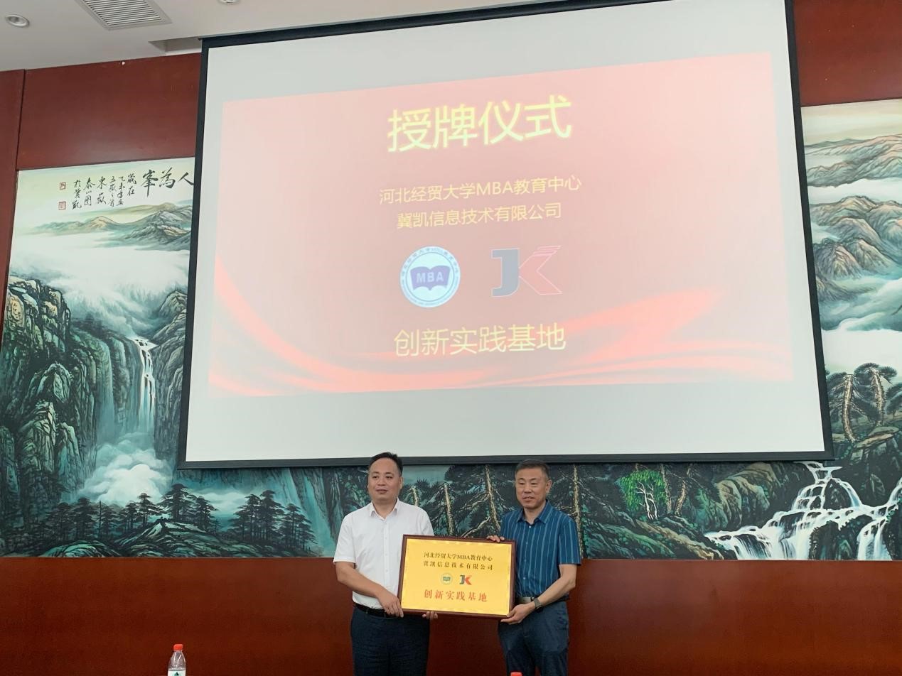 报告结束后,举行了威廉希尔官网MBA教育中心创新实践基地揭牌仪式。桑银峰老师和魏二宏总经理共同为基地揭牌,冀凯信息技术有限公司正式成为威廉希尔官网MBA教育中心的创新实践基地。