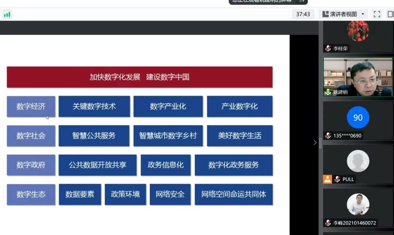 报告结束后,姚建明教授与公司教师和MBA学员就数字经济领域的研究选题、企业数字化转型中的误区、企业人力资源管理系统建设等问题进行了充分交流。他强调,数字经济的本质是数字技术支撑起来的创造价值的活动,创造的价值既体现为经济价值,也体现在社会价值,这是企业在数字化转型过程中首先要明确的关键问题,因此需要企业在数字化转型之前首先要从战略上对数字化转型的目标、路径、措施等进行系统设计。