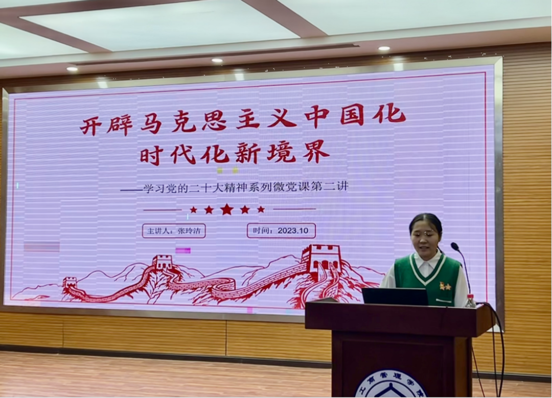 2023级工商管理专业研究生张玲洁主讲本届第二期微党课“开辟马克思主义中国化时代化的新境界”。首先,回顾了马克思主义中国化时代化的三次飞跃,每次飞跃都是一座丰碑,都是引领中国的时代精神。毛泽东思想指引着党领导人民进行新民主主义革命、社会主义革命和建设;中国特色社会主义理论体系指引着党领导人民进行改革开放和社会主义现代化建设;习近平新时代中国特色社会主义思想指引着党领导人民创造新时代中国特色社会主义的伟大成就。其次,从马克思主义的重要地位及与时俱进两个方面论述了开辟马克思主义中国化时代化新境界的必要性。习近平总书记在党的二十大报告中强调,马克思主义是我们立党立国、兴党兴国的根本指导思想。在中国,坚持马克思主义就必须发展马克思主义,不断开辟马克思主义中国化时代化新境界。最后,指出要深刻把握“两个结合”和继续推进实践基础上的理论创新,以此开辟马克思主义中国化时代化新境界。