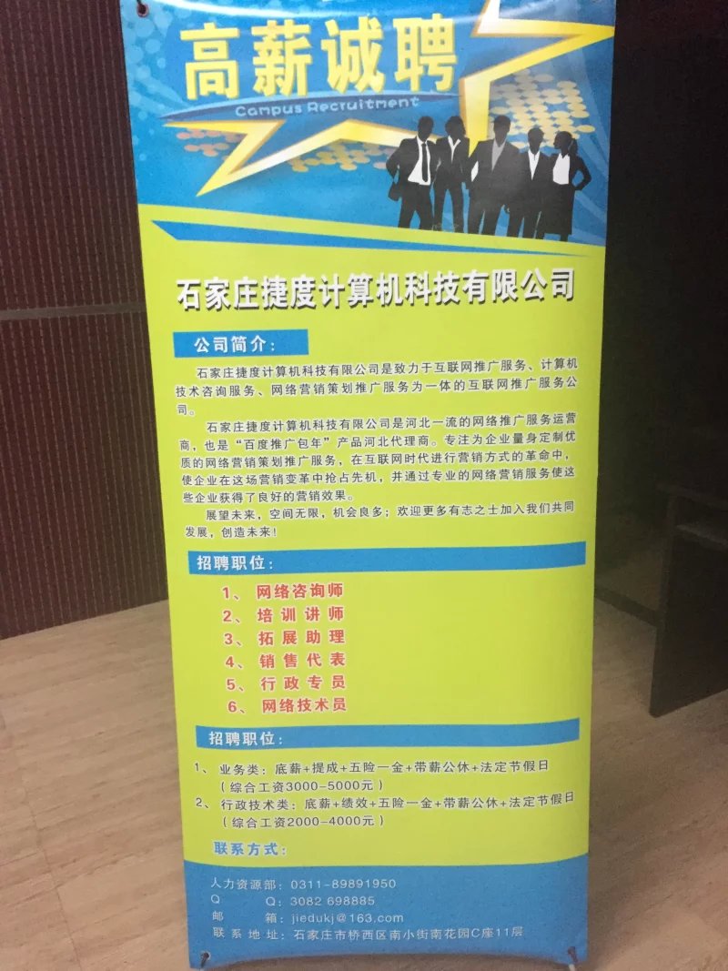 招聘会现场,该公司人力部人员对该公司的情况、主要业务、招聘要求进行了详细的介绍,并与公司应聘同学进行了良好的沟通。石家庄捷度计算机科技有限公司现场招聘活动效果显著,应聘同学在招聘现场的临场表现能力和良好的心理素质展现出了公司毕业生的自身能力与素质,该公司通过举办校内招聘会也对应聘人员有了较为全面的了解。