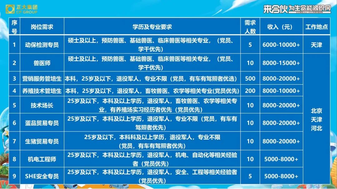 正大集团京津冀区业务覆盖两市一省:北京市、天津市和河北省,下属6家公司,其中4家饲料公司,2家种猪养殖公司,总投资约5亿人民币,目前拥有正式员工超过800人,拥有一大批硕博和高级专业技术人才。京津冀区饲料事业总生产能力72万吨,主要经营生产产品包括猪、奶牛、肉牛、肉羊、蛋鸡、肉鸡、鸭、水产八类饲料品种的配合饲料和浓缩饲料、添加剂预混合饲料及精料补充料,畜禽养殖、试验以及销售自产产品,并且全套引进国内外现代化高科技的生产设备,采用泰国正大集团先进的饲料生产工艺和管理技术,销售区域覆盖网点广泛,不仅是集团加工生产饲料品种最全的饲料地区,也是国内最现代化的饲料产地之一。京津冀区生猪产业化养殖项目,采用最先进设备和先进的生产工艺,引进优良种猪,实行全封闭饲养。从曾祖代种猪场、祖代场、父母代种猪场、配套育肥场,以及规划建设的屠宰加工厂和肉食品加工厂,最终将在本地区内形成一条完整的农牧食品产业链。