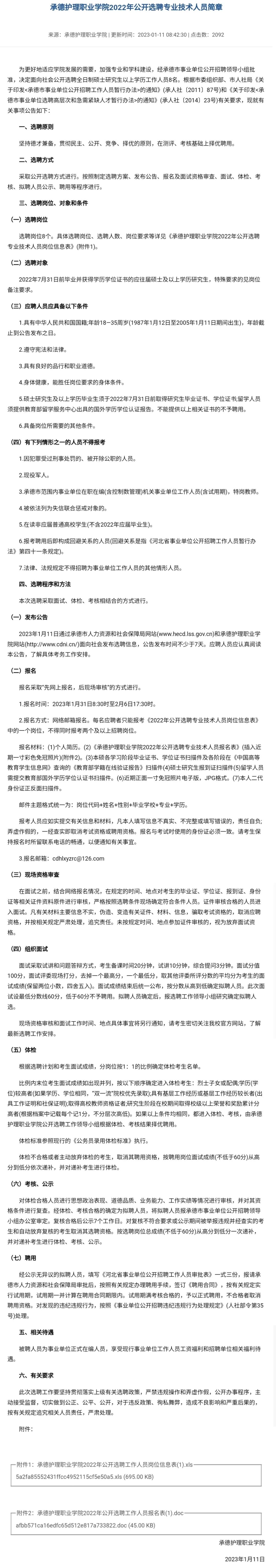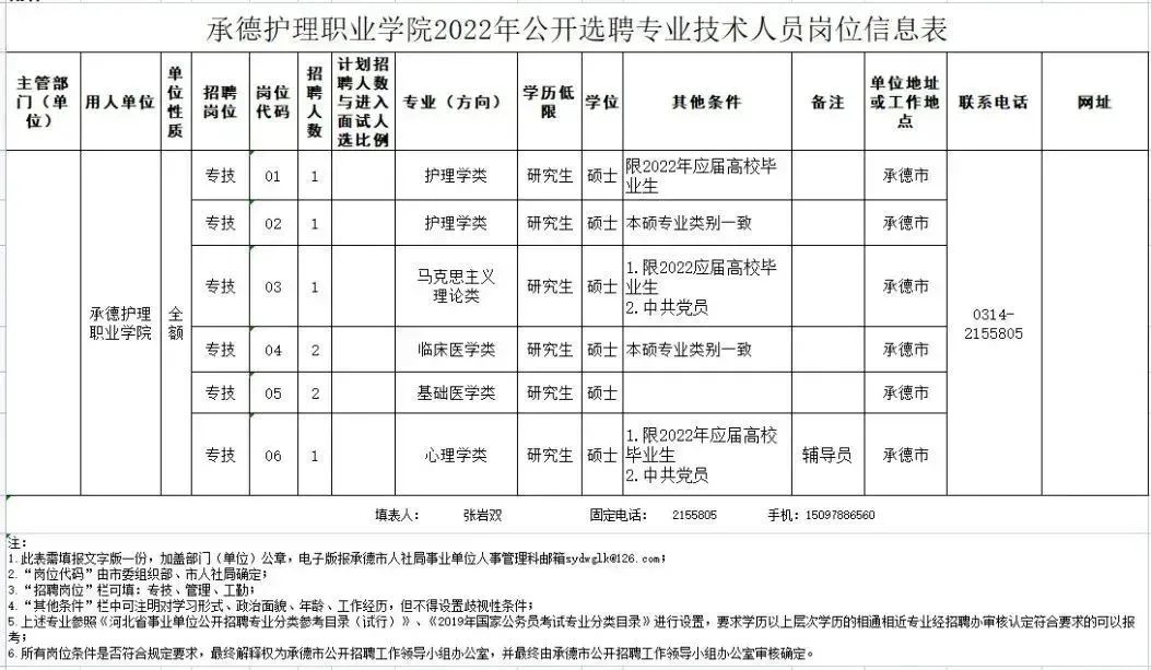 承德护理职业公司选聘岗位8个。具体招聘人数和岗位条件详见↓↓↓