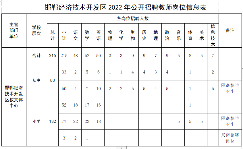 面向社会公开招聘教师215名。具体招聘人数和岗位条件详见↓↓↓