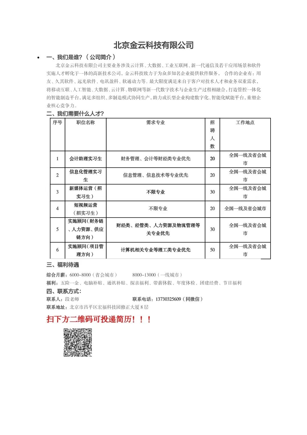 校园招聘早知道(三百五十八)||北京金云科技有限公司