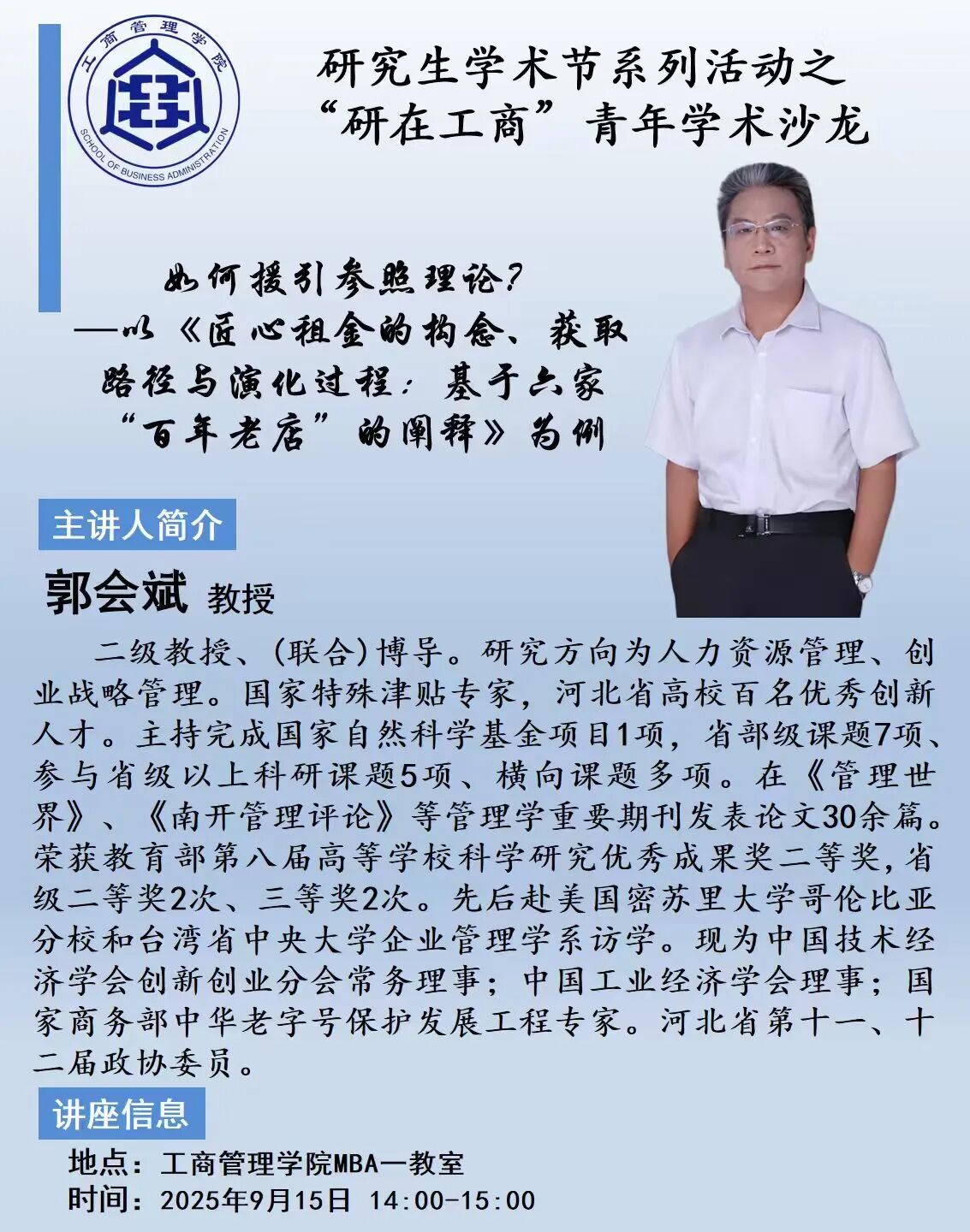 讲座预告||如何援引参照理论?—以《匠心租金的构念、获取路径与演化过程:基于六家百年老店”的阐释》为例