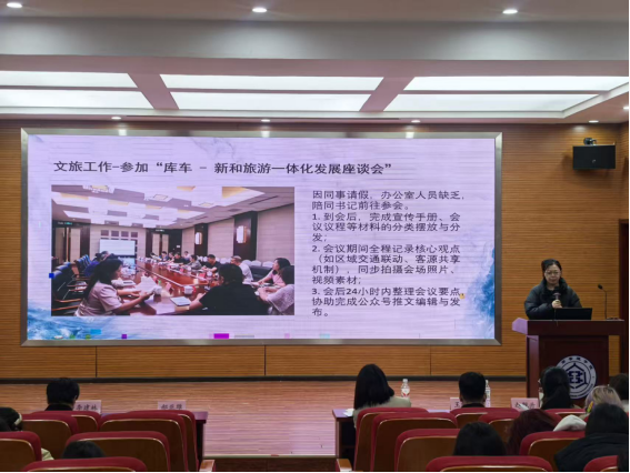在新疆阿克苏市文旅局完成组织部日常工作,组织参加了“库车-新和旅游一体化发展座谈会”,进行了实地调研、整理文档等基础工作并撰写了《新和县天籁加依景区调研报告》。
