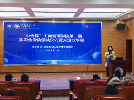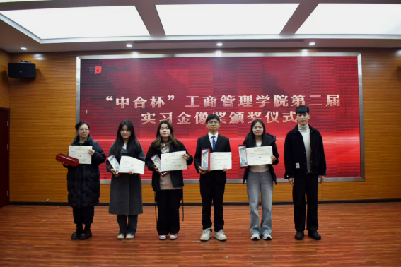 为进一步搭建理论与实践深度融合的优质平台,表彰在实习实践中涌现的卓越学子,助力同学们从校园到职场的转型之路上行稳致远,11月17日,威廉希尔官网举办了第二届“中和杯”实习金像奖颁奖仪式暨交流分享会。活动由院主持队成员杨佳烨主持,工商管理公司党委副书记宋欣、团委书记兼员工工作办公室主任王晓东、学科科研办公室主任李建林、就业联络员赵靓丹、中合公考负责人郝亚雄先生出席,获奖同学和师生代表参加。