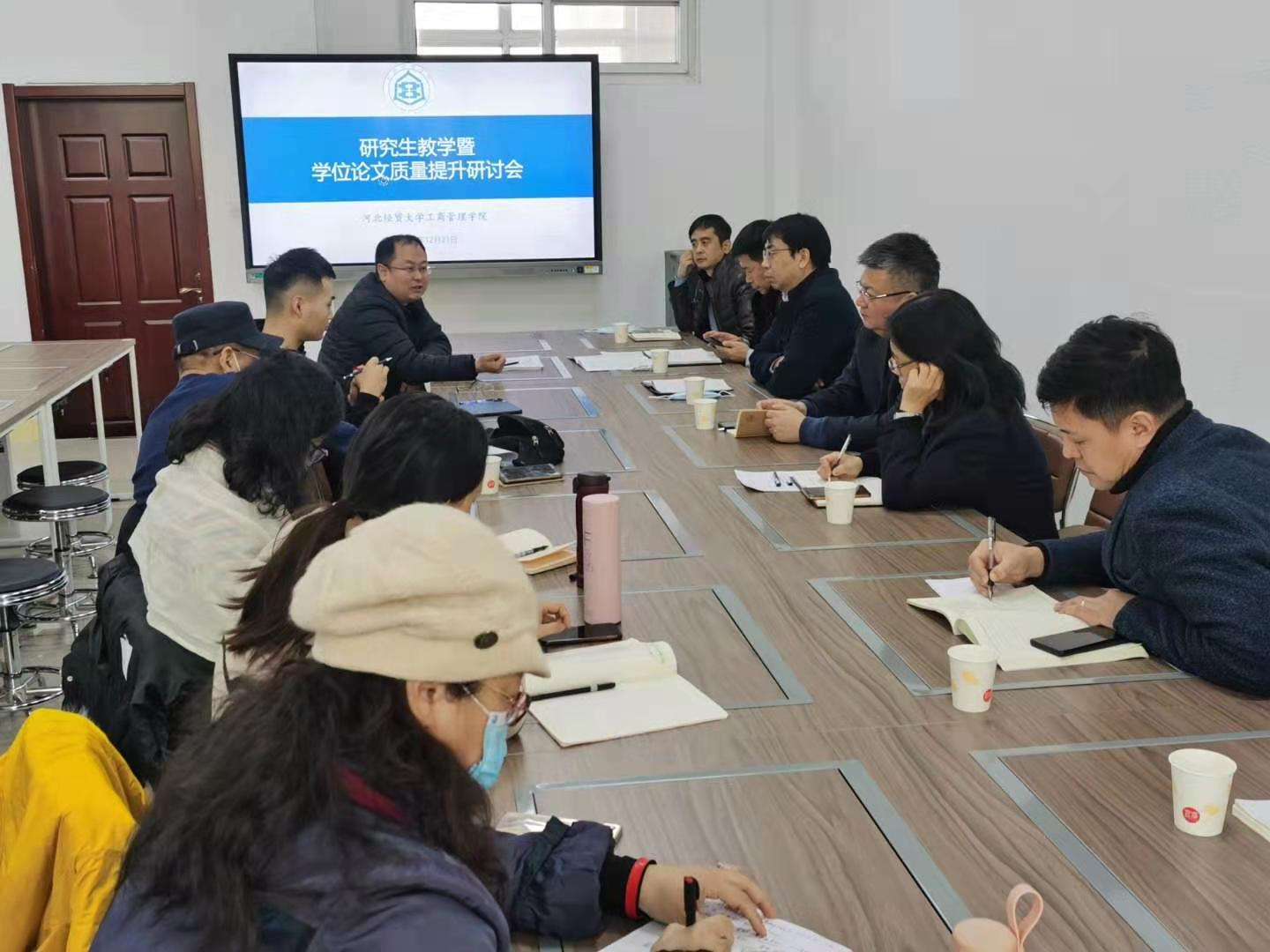 12月21日下午,威廉希尔官网于二教303教室举行研究生教学暨学位论文质量提升研讨会。董事长刘兵、研究生公司经理赵士豪应邀出席,公司领导班子成员及全体研究生导师参加,会议由副经理石晓飞主持。
