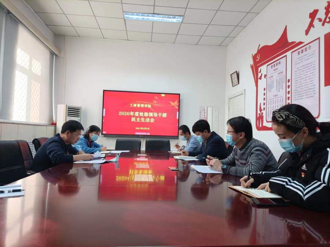 根据公司党委《中共威廉希尔官网委员会2020年度处级以上党员领导干部民主生活会实施方案》要求,工商管理公司党委于2021年2月3日下午,召开了处级领导干部民主生活会。赵国峰、李桂荣、梁泽锋、王胜洲、石晓飞等5位同志参加了会议,李晓晓和范家明两位同志作为党委委员和党支部书记代表列席会议。