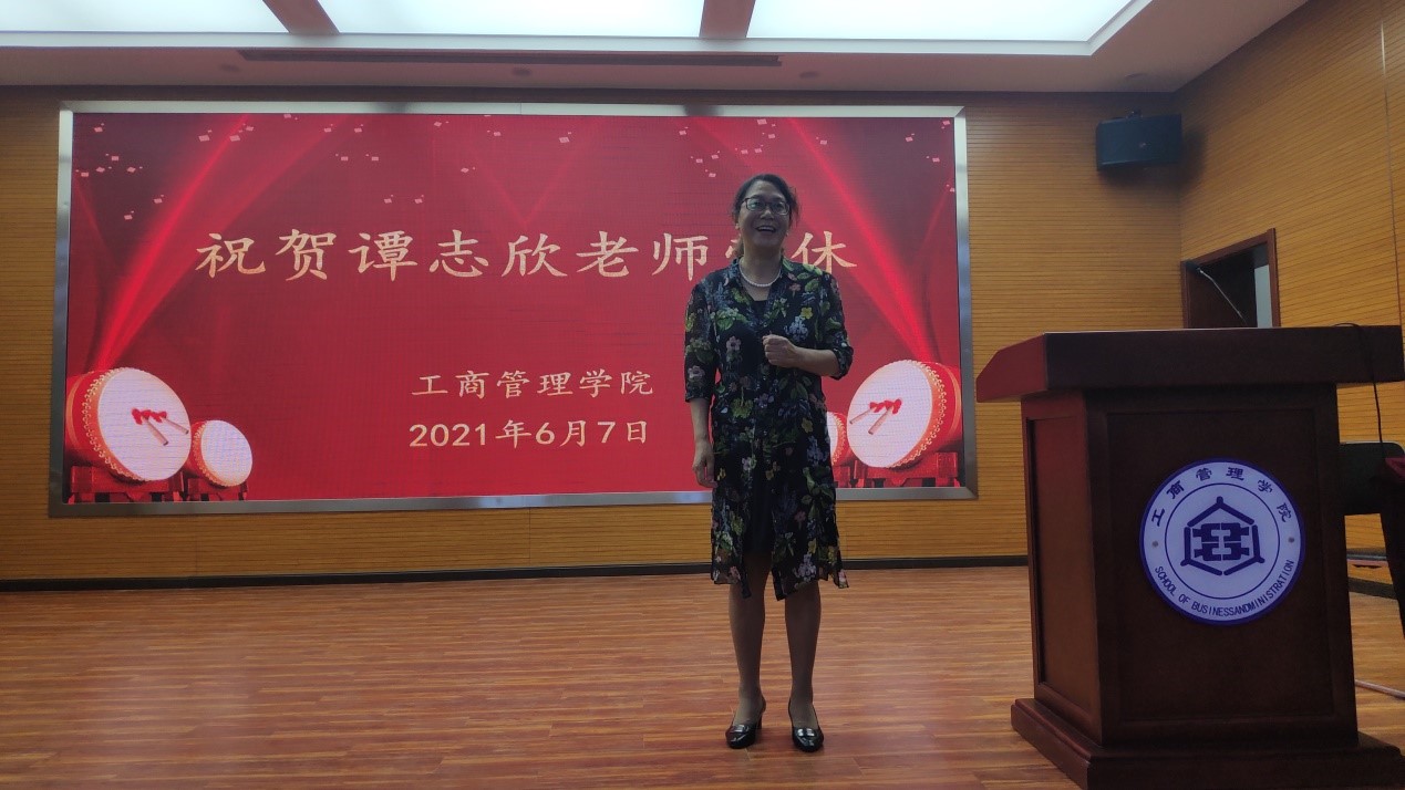 谭志欣教授回顾了自己在威廉希尔官网学习和工作的经历,深切表达了对公司、同事们的感谢之情和对讲台、对员工的不舍之情。她表示,自己若有能力、有条件,就不会停止学术研究,希望人力资源管理系能够繁荣昌盛,公司和公司能取得更快更好的发展。