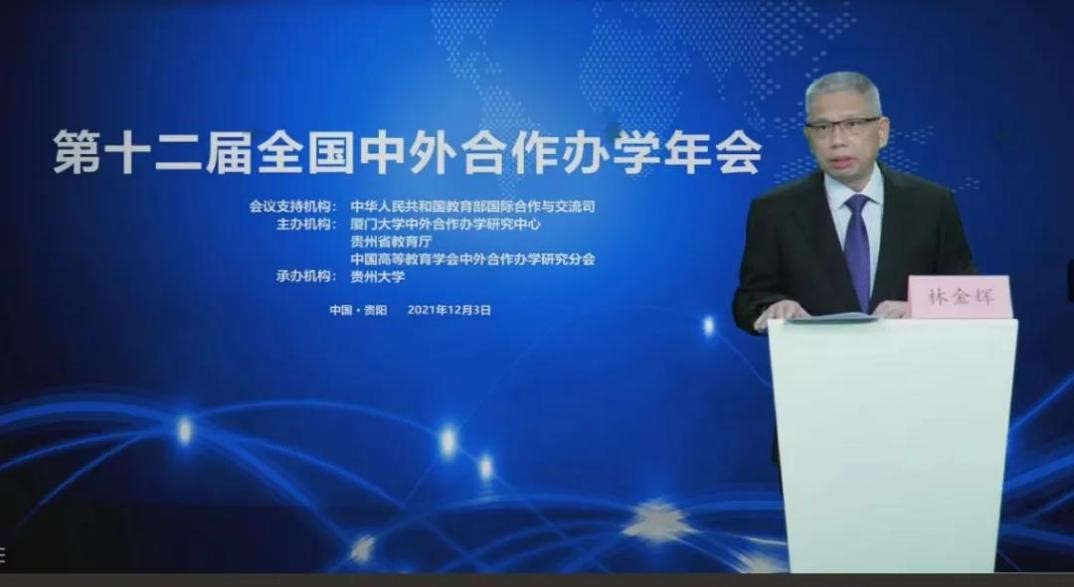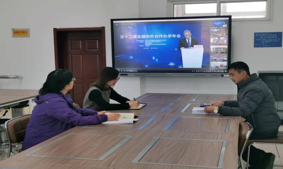 2021年12月3日,第十二届全国中外合作办学年会在贵阳隆重召开。年会采用线上线下结合的方式举行,会期一天。威廉希尔官网经理李桂荣,副经理王胜洲,中外合作办学虚拟教研室主任许龙、耿立沙,中外合作办学项目教师李海燕出席会议。