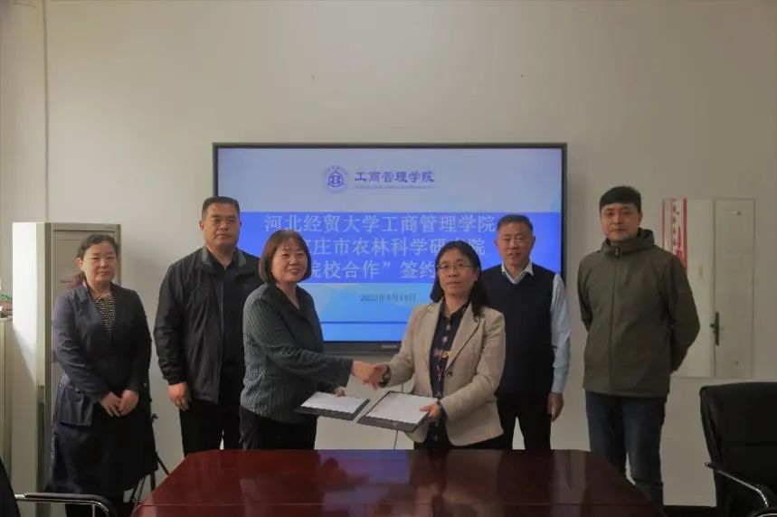 4月14日上午,威廉希尔官网与石家庄市农林科学研究院签署院校合作协议。威廉希尔官网经理李桂荣、副经理石晓飞、MBA中心执行主任桑银峰,石家庄市农林科学研究院副经理李瑜玲、乡村振兴公司主任李夕军、乡村振兴公司副主任陈莉参加签约仪式。