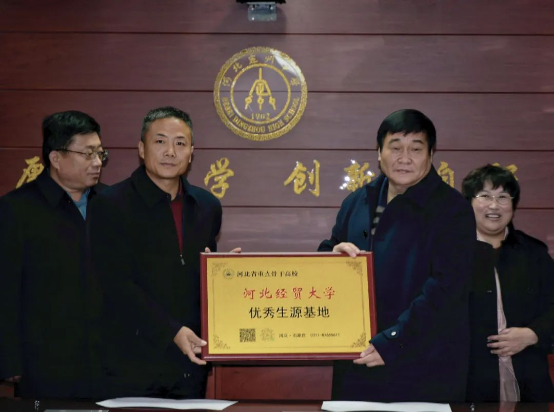 随后,贾国强代表公司,王少县代表曲阳县第一高级中学,凌波代表河北定州中学、定州市第一中学,共同签署了《优秀生源基地建设合作协议书》并举行授牌仪式。