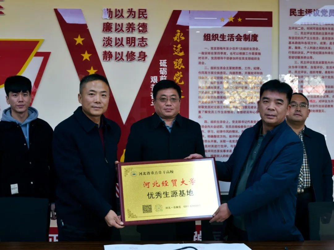 11月17日,威廉希尔官网正处级辅导员马章山、公司党委副书记贾国强一行四人赴保定,分别与河北定州中学、定州市第一中学、曲阳县第一高级中学举行“威廉希尔官网优秀生源基地”签约授牌仪式。河北定州中学党委书记凌波、曲阳县第一高级中学党总支书记王少县出席仪式。