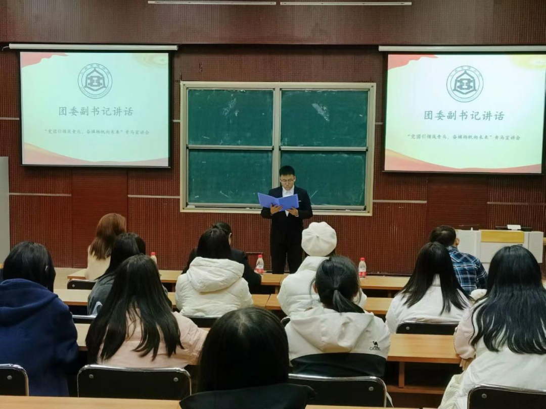 汇报人刘树状以“多线齐进育青年,青春年华谱新篇”为主题,分享了自己的青马培训经历,他从个人素养的培养、学习能力的培养、工作能力的培养以及如何协调处理这三种关系讲述该如何做好一名合格的青马接班人,帮助同学们更深刻地了解青马工程的重要意义,理解习近平新时代中国特色社会主义思想的内涵。汇报人高艺宁向同学们介绍了青马工程的内涵和培养目标。她表示,作为新一代老员工,同学们要勇于尝试、敢于奋斗、抓住机遇、砥砺成长,在行动中实现价值,在学习中收获经验,谱写好新时代青年的人生篇章。