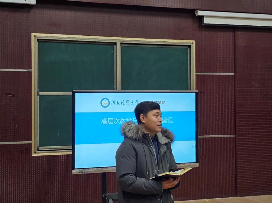 王胜洲副经理对教学工作进行了全面布置,他明确提出三大任务:强化本科教学,深耕课程建设;认真准备国家级和省级一流本科课程中期检查,巩固教学改革成果;深度修订课程教学大纲、教案、课件,紧密结合新财经改革,注重大数据、人工智能等新技术与专业知识的深度融合,以及有效将课程思政融入教学内容。