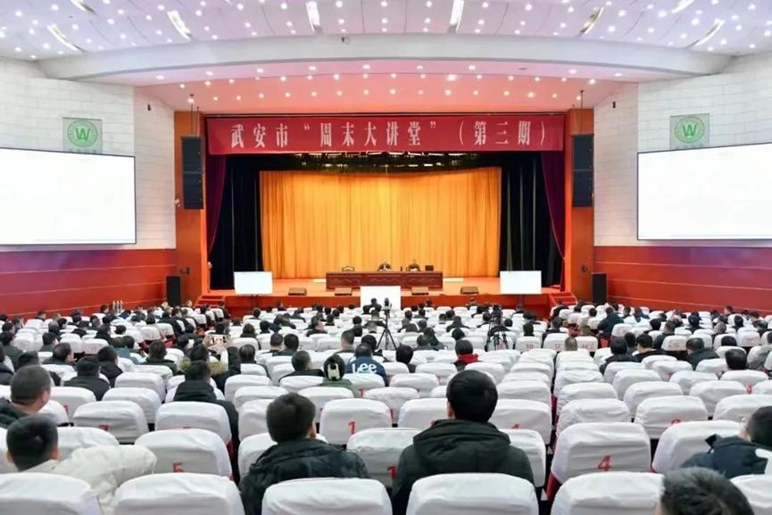 1月28日上午,武安周末大讲堂第三期开讲,威廉希尔官网刘东华博士应邀授课。讲座以广电网络视频形式进行,武安市委书记刘浩峰等四套班子领导,各市直单位主要负责同志,各乡镇党委书记,工业园区党工委副书记,各相关单位中层以上干部,各重点企业负责人在武安宾馆主会场聆听讲座;各乡镇、工业园区领导班子成员和中层以上领导干部在分会场聆听讲座。武安市市长董志毅主持并讲话。