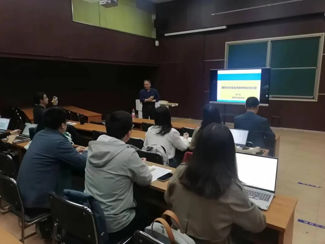 任广乾教授主持过两项国家自然基金项目,在研一项国家社科基金重点项目,在国家级项目申报方面积累了宝贵的经验。首先,他从国家级课题申报的重要性、国社科与国自然的区别、国社科基金及国家社科基金重点项目申报的建议三方面展开,强调了选题的新颖性和前沿性,以及研究内容的系统性、层次性、应用性、创新性和复杂性,同时结合自己主持的国家社科基金项目申报书详细讲解了课题申报书的撰写,分享了自己在申报过程中的心得体会。