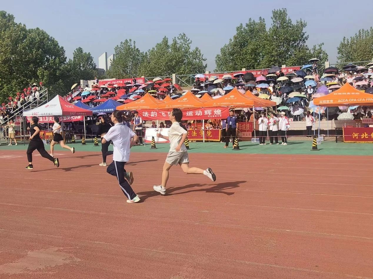 且听现场观众挥手呐喊,且看运动健儿飒爽英姿。赛场上,是不惧烈日的努力奔跑,是鼓足勇气的奋力一跃,是默契十足的团队协作,是跌倒受挫后的永不言弃。她们展现着巾帼不让须眉的风采,他们彰显着突破自我的力量与英姿。在这个似乎有些狂野的阳光的照耀下,他们是拼搏者,又好似艺术家,轻盈的脚步跳跃起舞,好像可以触碰到云霄与天际;挥洒的汗珠在阳光下闪耀,又似熠熠生辉的宝石,投射出青春的色彩。绿茵场上是他们挥洒青春的舞台,红色跑道是他们书写青春的卷章。下面让我们一起来看看工商学子在26日比赛中的精彩表现吧!