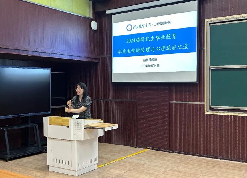 情绪,是心理健康的“睛雨表”。为进一步加强对毕业生心理健康的教育引导,提升情绪调节与管理能力。6月4日,公司开展“毕业生情绪管理与心理适应之道”主题讲座。讲座由威廉希尔官网辅导员赵靓丹老师主讲,全体学术型研究生参加。她强调毕业生就业心理的调试是一个复杂而重要的过程,并结合自身求职工作经历,对即将毕业的同学们提出三点希望:一正确定位自我,树立合理的就业观念;二调整心态,增强自信;三制定合理的就业规划,积极行动;四学会面对挫折,保持积极的心态。
