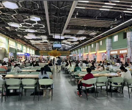 紧邻1、2栋员工公寓,距离第三教学楼较近。这里用餐环境一流,有自选餐,小龙虾拌面、咸蛋黄拌面等招牌美食。周一至周五的12点和18点是用餐高峰。