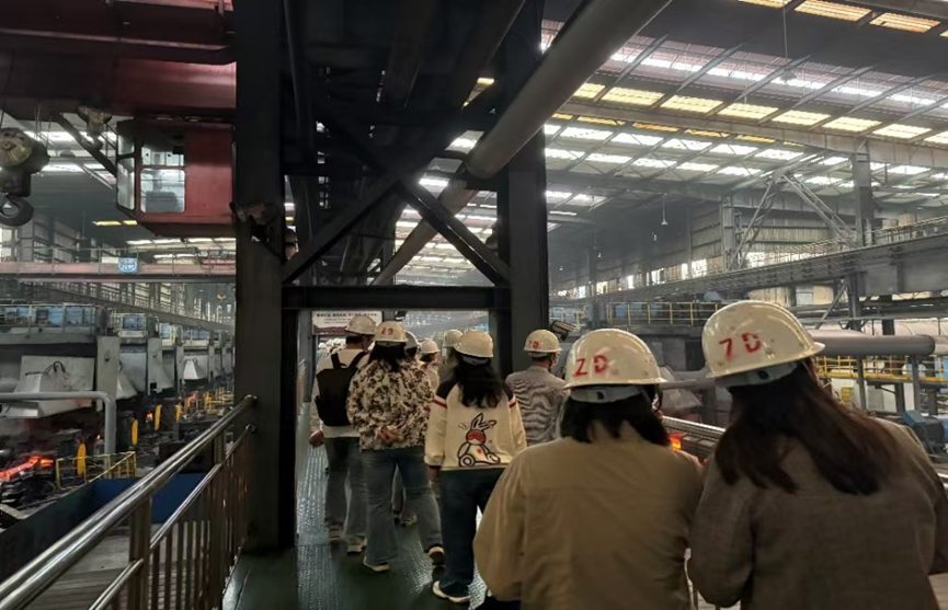 在敬业集团工作人员的精心安排下,师生参观了企业的创业史展厅和创新发展展厅,全面了解了企业从初创到辉煌的各个关键节点,深刻体会了创新与责任并重的企业精神。随后,师生一行参观了第一炼铁事业部B号高炉,直观感受了炼铁工艺的原理和奥秘。步入线棒材车间、宽厚板车间,师生们更是近距离感受了智能化工作模式的广泛应用和自动化生产线的高效运转。现代化车间里精准无误的控制系统和严苛的质量控制与环境管理体系,无不彰显着敬业集团在管理创新、技术研发与可持续发展方面的卓越成就。