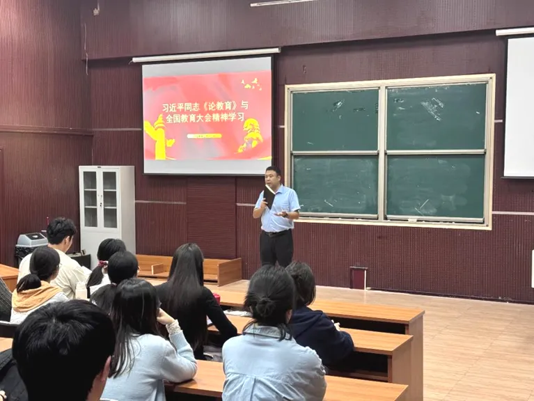 各班辅导员认真落实思想教育工作,陆续开展“习近平同志《论教育》与全国教育大会精神学习”的主题班会。班会上,各辅导员带领同学们学习了习近平总书记在全国教育大会上的重要讲话,强调了教育作为强国建设、民族复兴之基的重要地位并介绍了国家的各项教育方针政策,鼓励同学们作为新时代的青年,要有远大的理想和信念,将个人发展与国家建设相结合,为实现中华民族伟大复兴的中国梦贡献力量。
