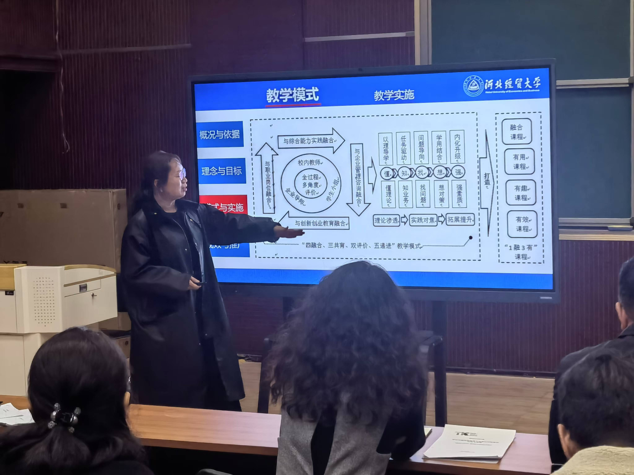 郑展老师以《商业综合实践课程教学创新的思考》为题进行展示。她通过“四融合、三共享、双评价、五递进”的教学模式,打造“一融三有”特色课程,助力员工深入理解商业运作,有效培养创新思维和协作能力。