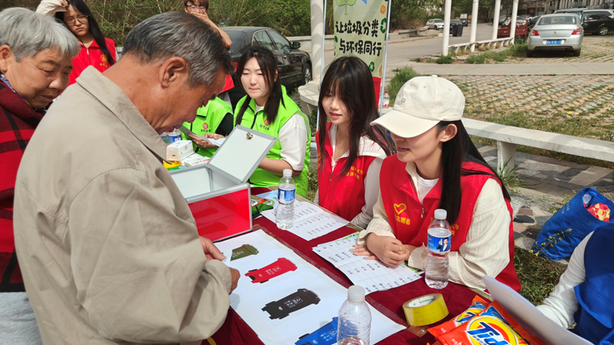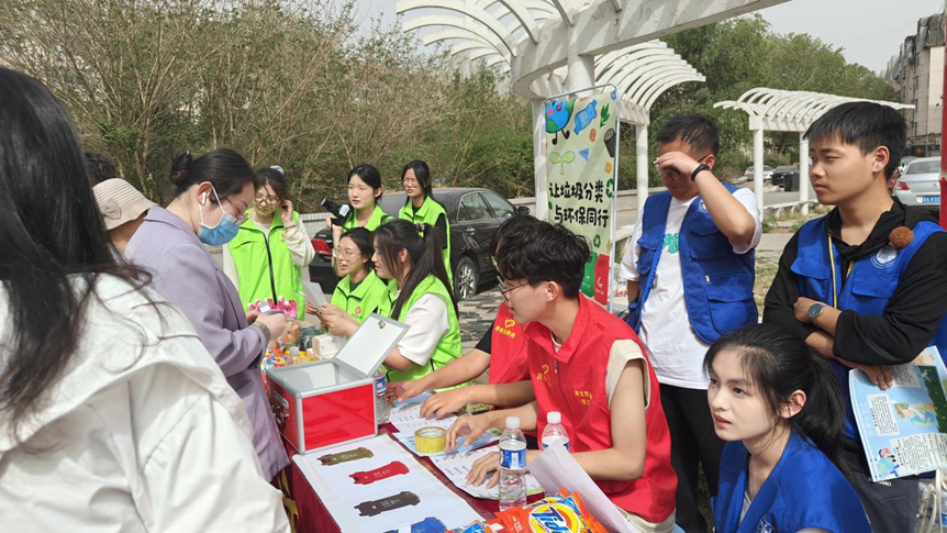 活动现场,志愿者们分工协作,通过多样化的互动形式普及环保知识。在社区广场的科普区,志愿者们手持精心设计的环保宣传单页向过往居民详细讲解垃圾分类标准和低碳生活技巧。针对老年人普遍关心的“废旧电池如何处理”“厨余垃圾能否回收”等问题,志愿者们结合生活实例耐心解答,确保讲解清晰易懂。