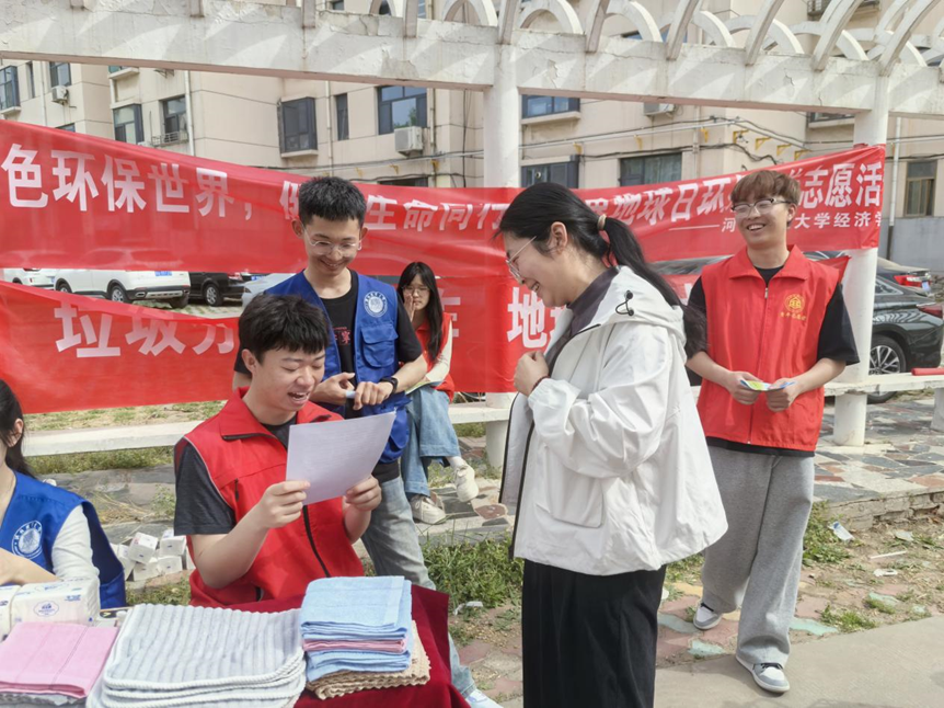 活动现场最受欢迎的当属“环保知识问答+沙包投掷”环节。志愿者们围绕垃圾分类标准、绿色生活方式等内容设置问题,居民们踊跃参与抢答,答对者可获得两次投掷沙包的机会,投中即可领取纸巾、肥皂、洗衣液等实用奖品。随着一次次的精准投掷和欢呼喝彩,环保知识在潜移默化中深植居民心中。春日的阳光渐热,志愿者们始终保持微笑,认真核对答案、分发奖品、维持秩序,用实际行动诠释青年志愿者的责任与担当。