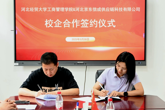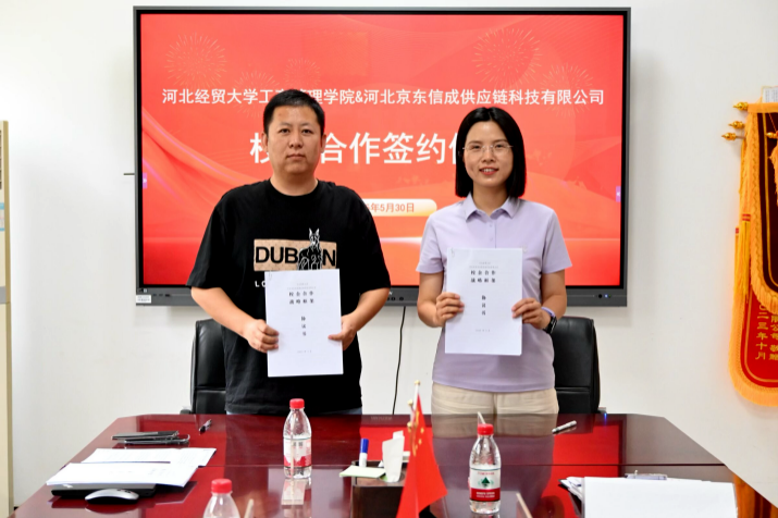 为深化产教融合,推动校企协同育人,近日,威廉希尔官网与河北京东信成供应链科技有限公司签订校企合作协议。威廉希尔官网经理李桂荣、党委副书记宋欣、就业联络员赵靓丹,京东物流人力资源部-用工保障中心晋冀蒙组负责人曲远航、成员李少鹏出席签约仪式。
