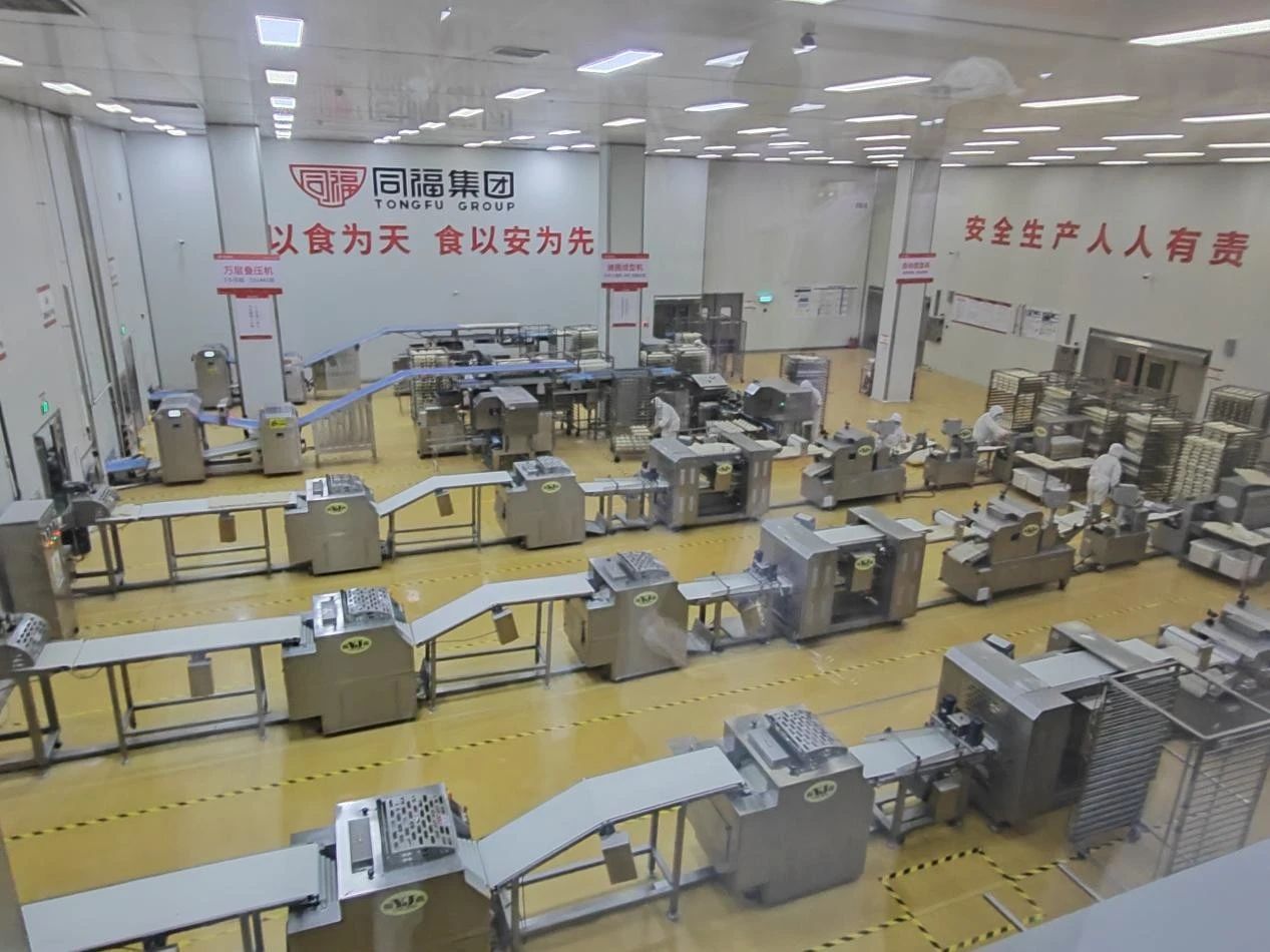 随后,调研小分队对同福集团现代化中央厨房生产车间进行实地探访。讲解员细致展示了“同福大馒头”“同福营养餐”及“同福粥品”等拳头产品的高度自动化、智能化生产线。同学们近距离观摩了从原料处理、精准配料、标准化生产到高效包装的全流程运作,深刻体会到科技赋能对保障食品安全、提升生产效率及实现产品标准化的关键作用。讲解员同时阐释了产品设计中“营养均衡”“便捷安全”与“口味普适”等核心原则,凸显了集团对市场需求的精准把握。